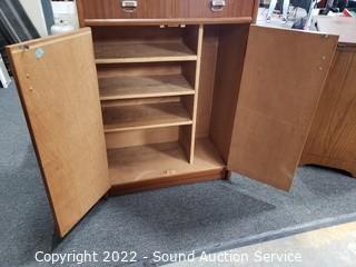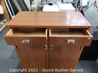 Lot #0361: Teak Laminate Finish 2 Drawer Cabinet
