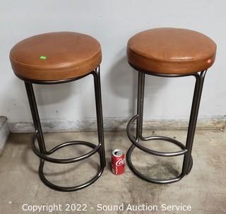 Lot #0023: 2 West Elm Faux Leather Metal Base Stools
