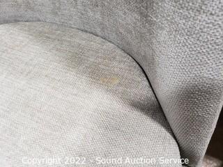 Lot #0028: 2 West Elm Gray Fabric Accent Chairs