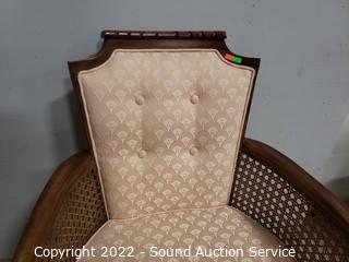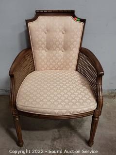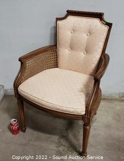 Lot #0027: Vintage Cane Side Fabric Upholstered Accent Chair