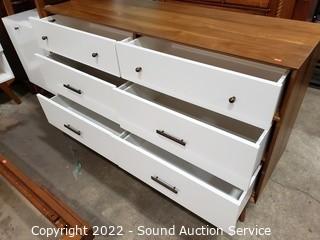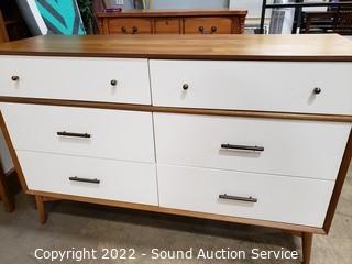 Lot #0004: West Elm MCM Teak & White Finish 6-Drawer Dresser