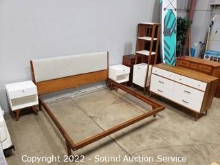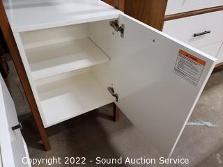 Lot #0003: West Elm MCM Teak & White Finish Bookshelf Cabinet