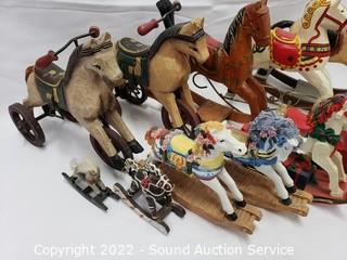 Lot #0132: 10ct Wood & Composite Rocking Horse Figures