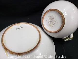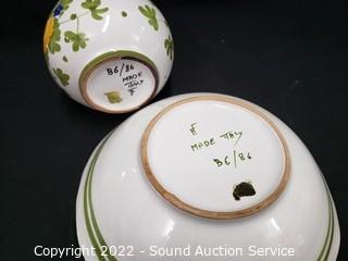 Lot #0195: 2 Hand Painted Italian Pottery Pitcher & Basins