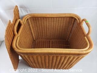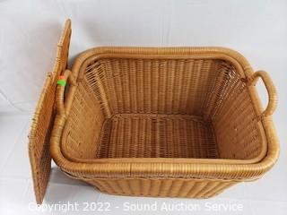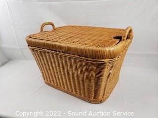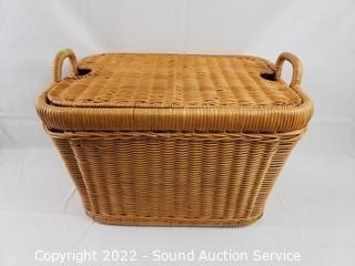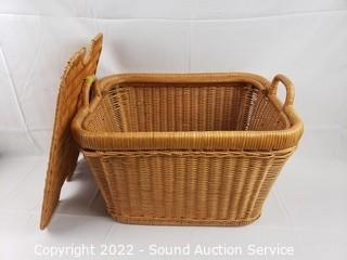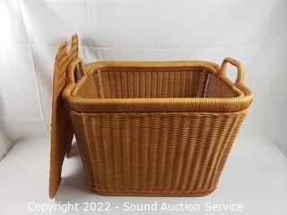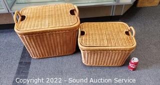 Lot #0323: 2 Nice Lidded Bamboo Wicker Wove Baskets