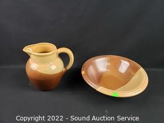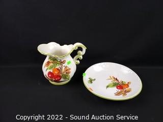Lot Details: Signed Tiay? MC/1196/B. Italy, Arnel's signed and Haeger. 6.5" to 7" tall, 5" to 6" diameter pitchers, 8" to 10" basins.