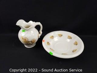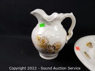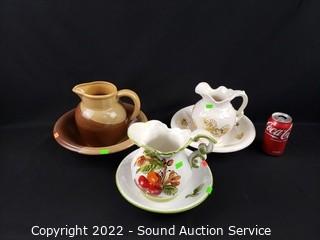 Lot #0064: 3 Vtg Ceramic/Pottery Pitchers & Basins