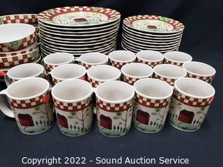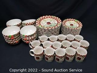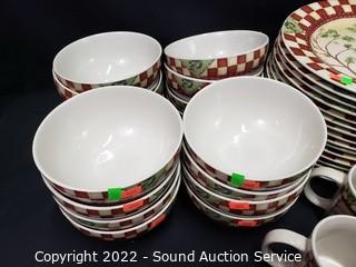 Lot Details: 16 bowls, 16 mugs, 15 lunch plates, 16 dinner plates. No issues.