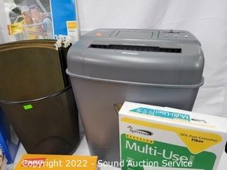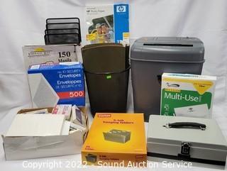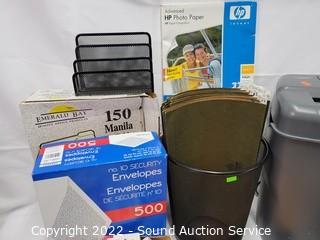 Lot Details: Waste bins, paper shredder, security envelopes, post-its, index cards & more.