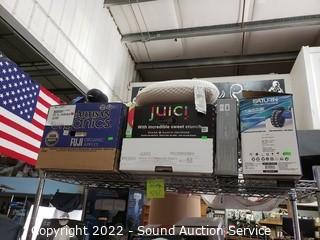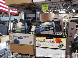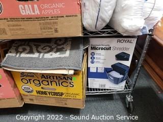 Lot Details: Cart NOT included. Security lights, drones, RC car, sheets, blankets, heated blankets, pillows, paper shredder, gloves, rug, Aero Garden & more. As is.