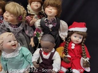 Lot Details: Several same style dressed differently, Ashton Drake "David" w/CoA, Keepsake, Yolanda Rello & others. Several with stands. Approx. 10" to 15" tall.