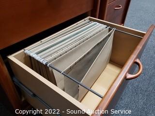 Lot Details: Made in Denmark. In excellent condition, only notice a couple minor dings and scuffs. Lower drawer for filing, comes with some file folders. 76" x 24" x 16". Matches the previous and next 3 lots.