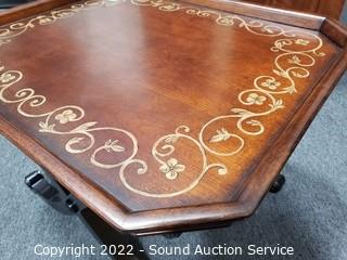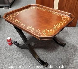 Lot #0017: Hand Painted Dark Stain Decorative Table
