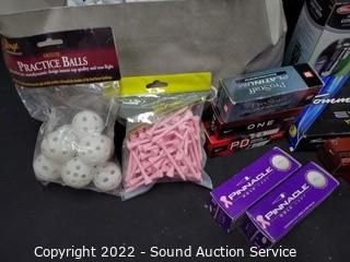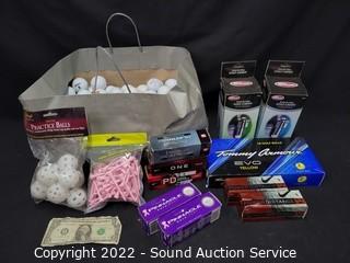 Lot #0272: Lg Collection of Golf Balls, Tee's & Ball Caddies
