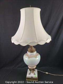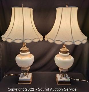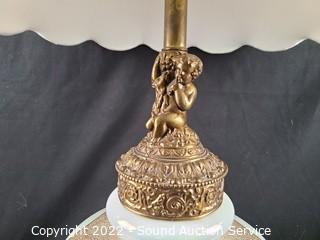 Lot #0007: 2 Hollywood Regency Marble Base Lamps w/Cherubs