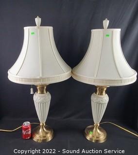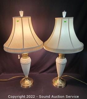 Lot #0020: 2 Lenox Lighting White & Gold Ceramic Table Lamps