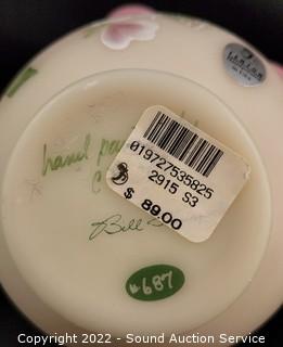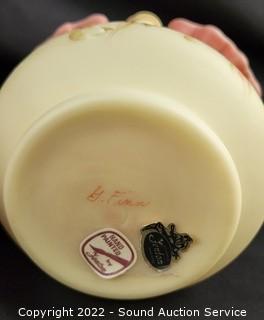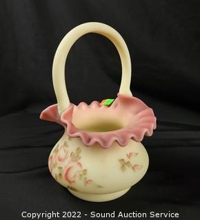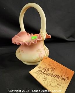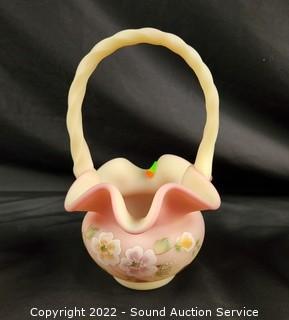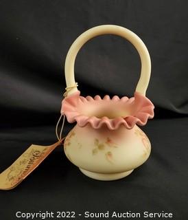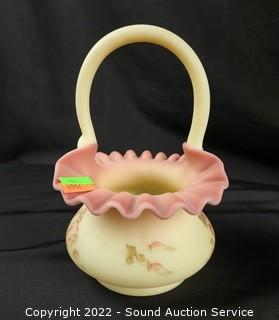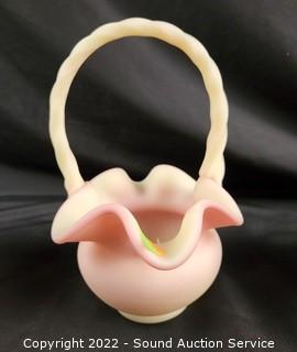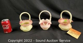 Lot #0185: 3pc Vtg. Fenton Burmese Handled Basket Glassware