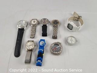 Lot #0145: 9 Men's Watches, Compass Watch, Child's Watch