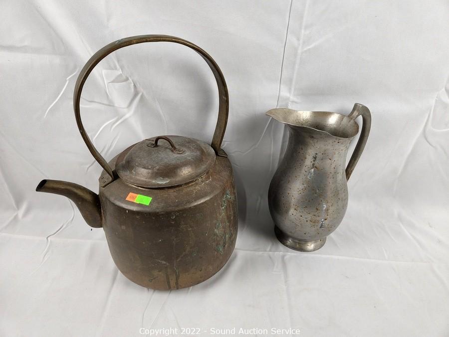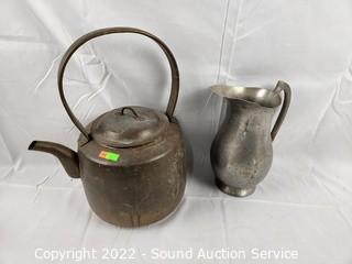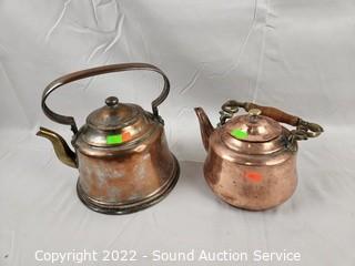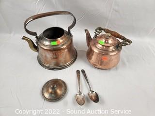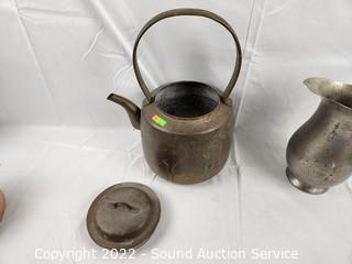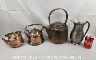Lot #0088: Vtg. Copper Tea Kettles & Pewter Pitcher