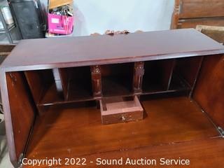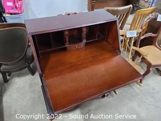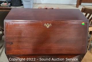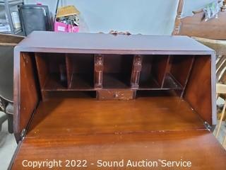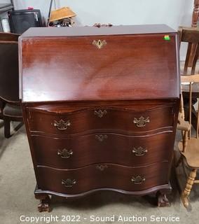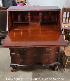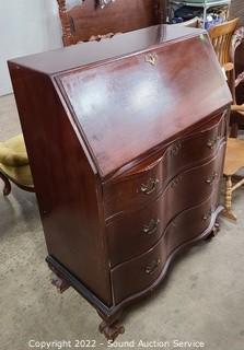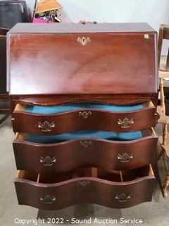 Lot #0012: Vtg. Mahogany Drop-front Serpentine Secretary Desk