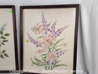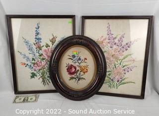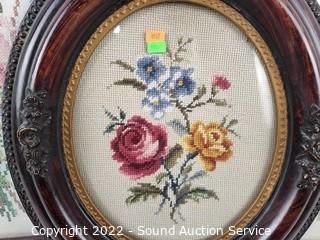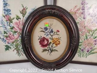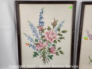 Lot #0101: Vtg. Needlepoint Roses & Cross Stitch Bouquets