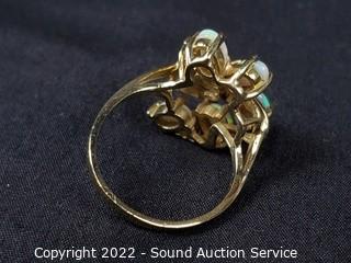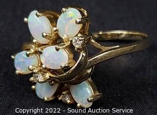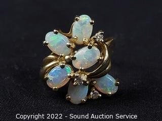 Lot #0154: 14k Gold, Diamond & Opal Ring S: 7.5