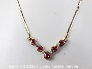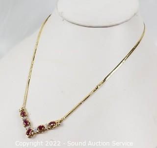 Lot #0174: 14k Gold, Ruby & Diamond Italian 18" Necklace