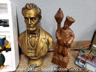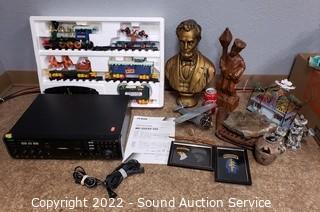 420 Lots including a lot of Antique & Vintage items; Ships Helm Wheels, Antique 1700's Gregorian 3 Panel Privacy Screen, Wood Doll House, Entryway Bench, Rustic 2-Drawer Wood Chests, Counter Height Scoop Seat Chairs, Kenmore Upright Freezer, Nice Ridgeway Tall Clock, Curio Cabinets, Various Vintage 7 Antique Artwork, Wood Well Planter Box, Varius Guitars, Keyboards, Amblifiers, Frame Patio Rocking Bench, Metal Art Lawn & Garden Decor, Concrete Bear Scene Bird Bath, Elec. Fireplaces, Heaters, Deer Mount, Antlers, Various Kitchen Cookware, Appliances, Marbles & Western Hunting Knives, Cadillac Hub Cap Quartz Clock, Vintage Cameras, Pyrex Cookware, Ninja 4in1 Cooking System, Various Sports Cards & Sports Memorabilia, Gold & Silver Jewelry, Collection of Coins, Records, China & So Much More!!!