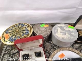 420 Lots including a lot of Antique & Vintage items; Ships Helm Wheels, Antique 1700's Gregorian 3 Panel Privacy Screen, Wood Doll House, Entryway Bench, Rustic 2-Drawer Wood Chests, Counter Height Scoop Seat Chairs, Kenmore Upright Freezer, Nice Ridgeway Tall Clock, Curio Cabinets, Various Vintage 7 Antique Artwork, Wood Well Planter Box, Varius Guitars, Keyboards, Amblifiers, Frame Patio Rocking Bench, Metal Art Lawn & Garden Decor, Concrete Bear Scene Bird Bath, Elec. Fireplaces, Heaters, Deer Mount, Antlers, Various Kitchen Cookware, Appliances, Marbles & Western Hunting Knives, Cadillac Hub Cap Quartz Clock, Vintage Cameras, Pyrex Cookware, Ninja 4in1 Cooking System, Various Sports Cards & Sports Memorabilia, Gold & Silver Jewelry, Collection of Coins, Records, China & So Much More!!!