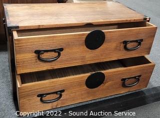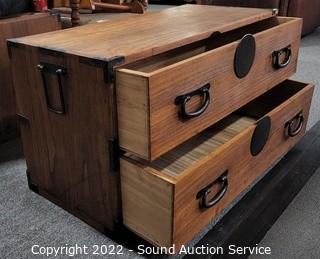 Lot #0024: Rustic 2-Drawer Wood Chest