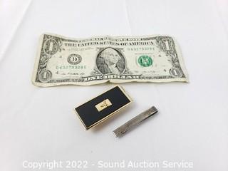 Lot #0152: Sterling Tie Clip & 10k Gold Accent Money Clip