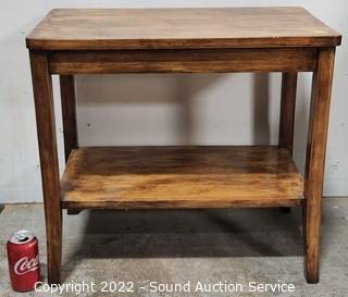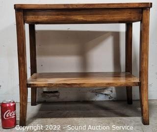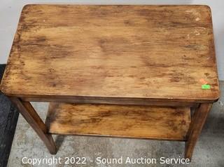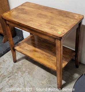 Lot #0054: Vintage Medium Finish Wood 2-Tier Table