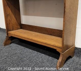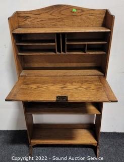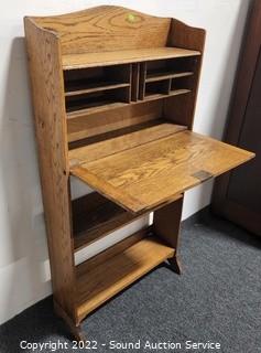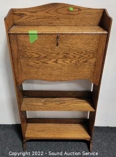 Lot #0043: Vintage Oak Writing Wall Desk Bookshelf