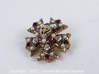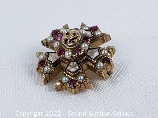 Lot #0315: 10k Gold, Ruby & Pearl Brooch