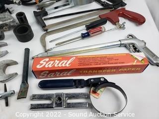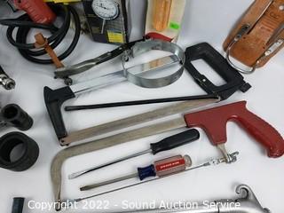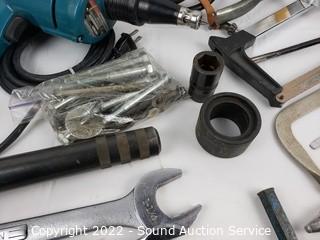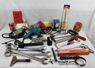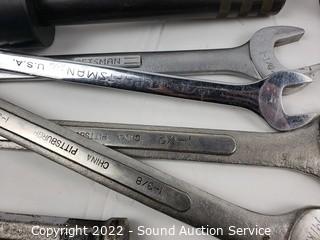 Lot #0169: 3 Drills, Dial Indicator, Lg. Wrenches & More