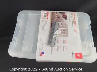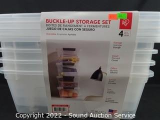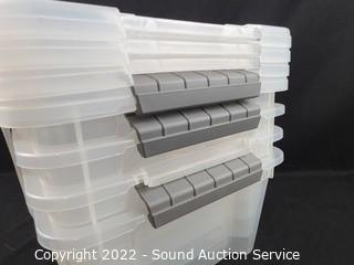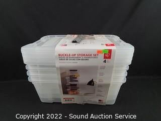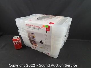 Lot #0360: 4 Buckle-Up 12.9qt Clear Storage Totes w/Lids