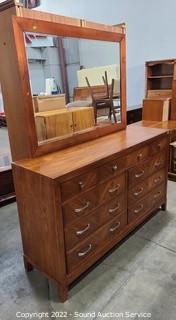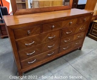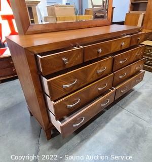 Lot #0004: Medium Finish 9-Drawer Dresser w/Mirror