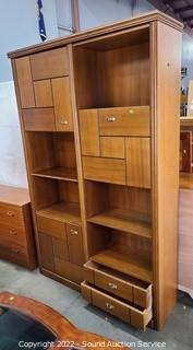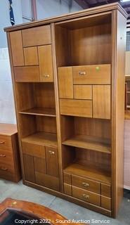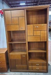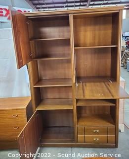 Lot #0009: Side-By-Side Teak Finish Wall Unit