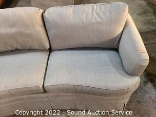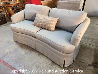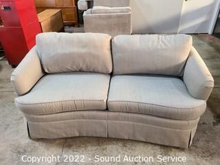 Lot #0002q: Taupe/Gray Fabric Upholstered Loveseat Sofa from Thomasville Furniture