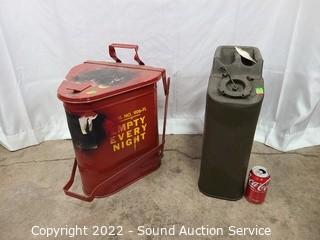 Lot #0037: Vintage US Jerry Can & Metal Step Rag Bin