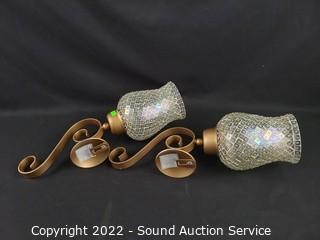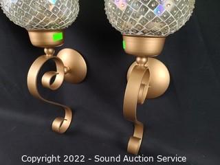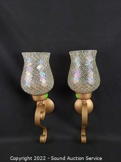 Lot #0079: 2 Mosaic Glass Candle Wall Sconces