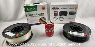 Lot #0103: 3 Rolls 3D Filament & Abra Raspberry XBMC