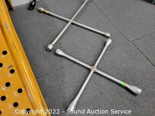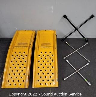Lot #0262: 3 Tire Irons & Yellow Steel Vehicle Ramps