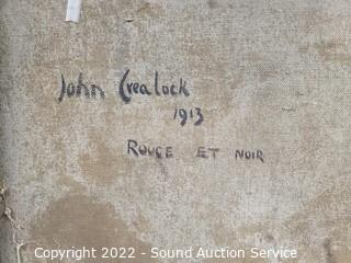 Lot Details: 58" x 50" Titled Rouge et Noir", with artist & location, date information on the back.