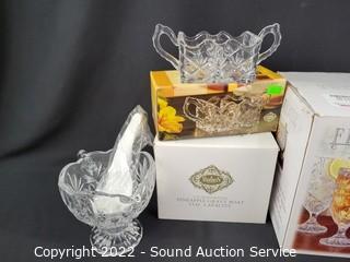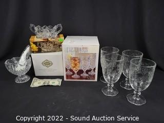 Lot #0320: Crystal Gravy Boat, Sweet n' Low Dish & Goblets
