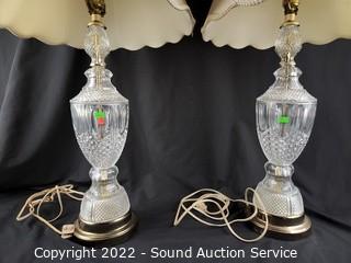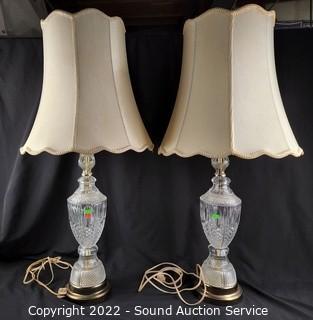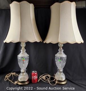 Lot #0037: Pair of Pressed Glass & Brass Table Lamps