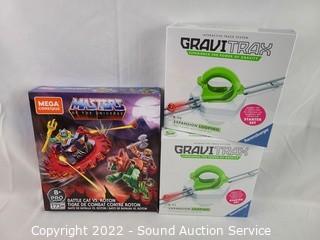 Lot Details: 4 Starbucks Bearistas, Mega Construx Masters of the Universe play set, Gravitrax interactive track system and 1st edition Beta Bear.