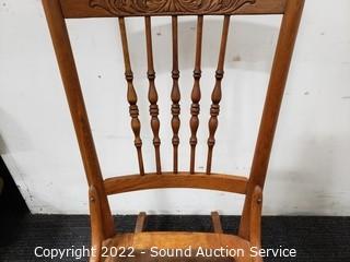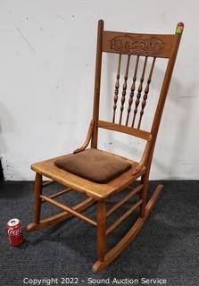 Lot #0011: Vintage Carved Oak Rocking Chair
