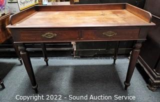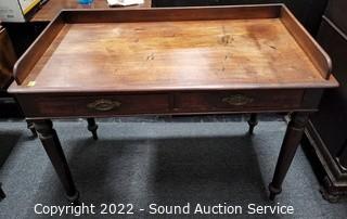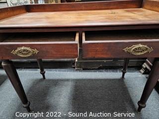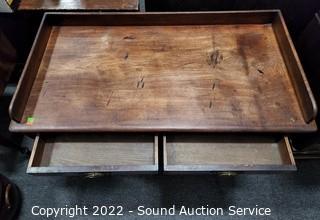 Lot #0014: Vintage Dark Finish 2-Drawer Hall Table