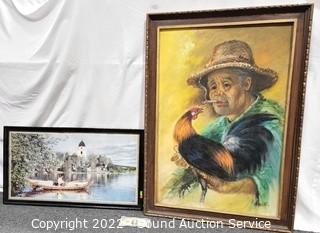 Lot #0030: Vintage Painting & Gondola Print Artwork